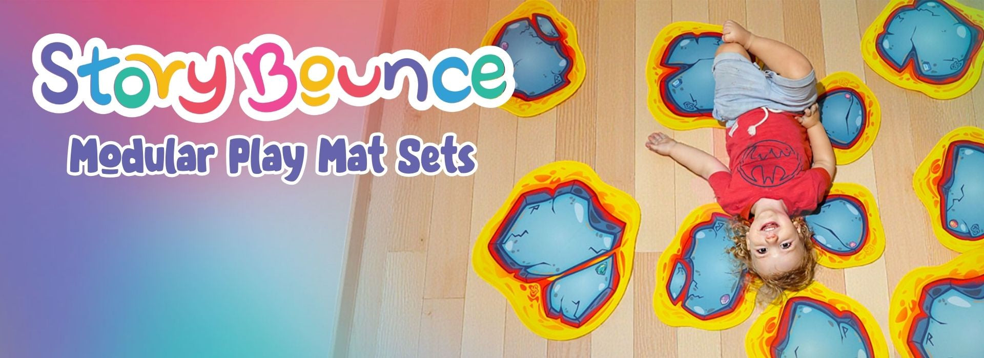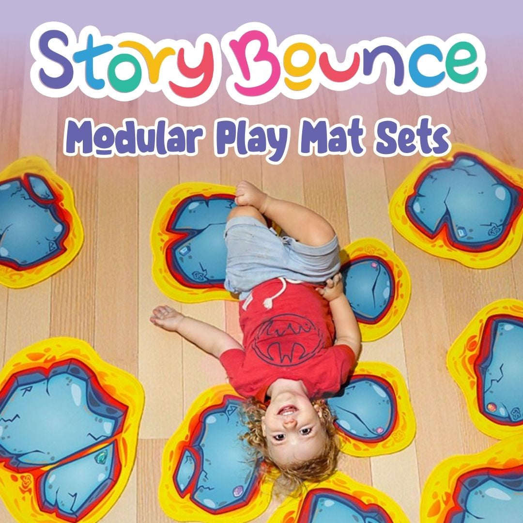 Story Bounce Play Mats are modular, flat movement tiles designed to create defined landing zones for active, imaginative play.